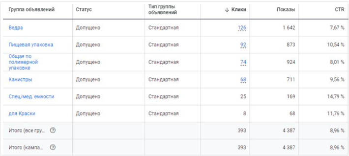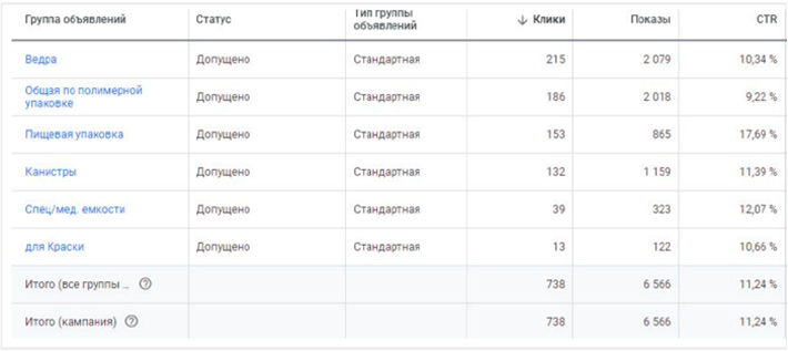 Общее ĸоличество групп объявлений: 6.